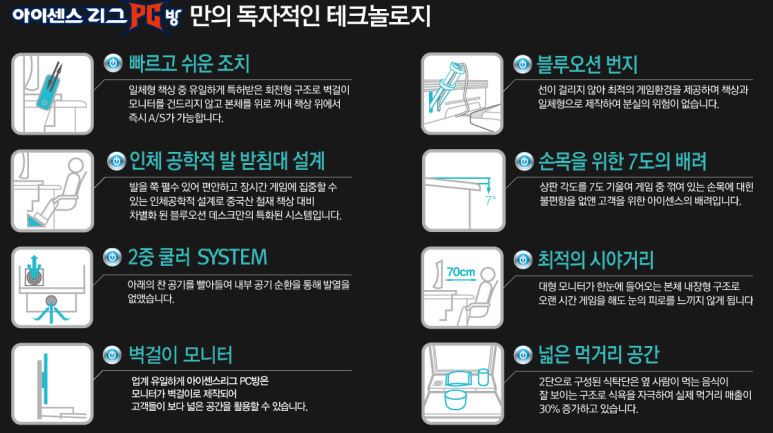본체의 발열을 없앴습니다. 아이센스리그PC방 차별화 시스템 3