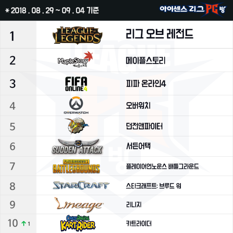 안녕하세요 아이센스리그PC방입니다 오늘은 2018년 8월 29일부터 9월 4일 기준 온라인 게임순위를 알아보는 시간을 가져보도록하겠습니다.