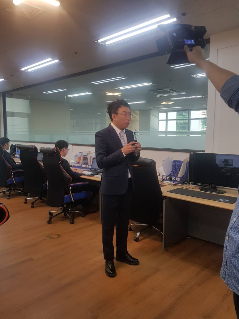 본사를 찾아주셨습니다. 특유의 호통개그와 유쾌한 성격덕에 본사직원 모두와 즐거운 촬영을 진행했답니다:D 저희 아이센스리그PC방