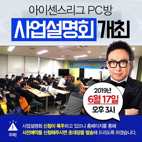 피시방창업 브랜드 아이센스리그PC방, 만석달성으로 인해 6월 17일(월) 사업설명회 추가진행 확정!