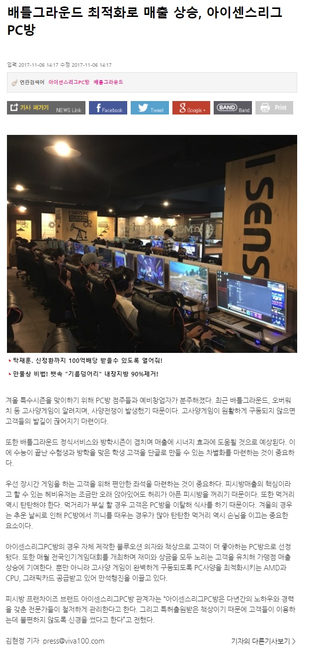 배틀그라운드출시, 아이센스리그PC방 전 가맹점 동시 사양 업그레이드 실시!
