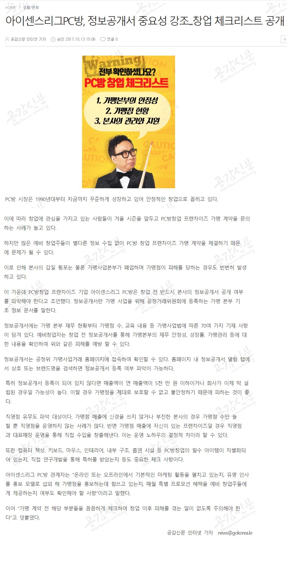 아이센스리그PC방, 정보공개서 중요성 강조, 창업 체크리스트 공개!