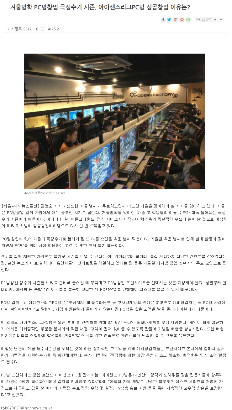 겨울방학 PC방창업 극성수기 시즌, 아이센스리그PC방 성공창업이유는?