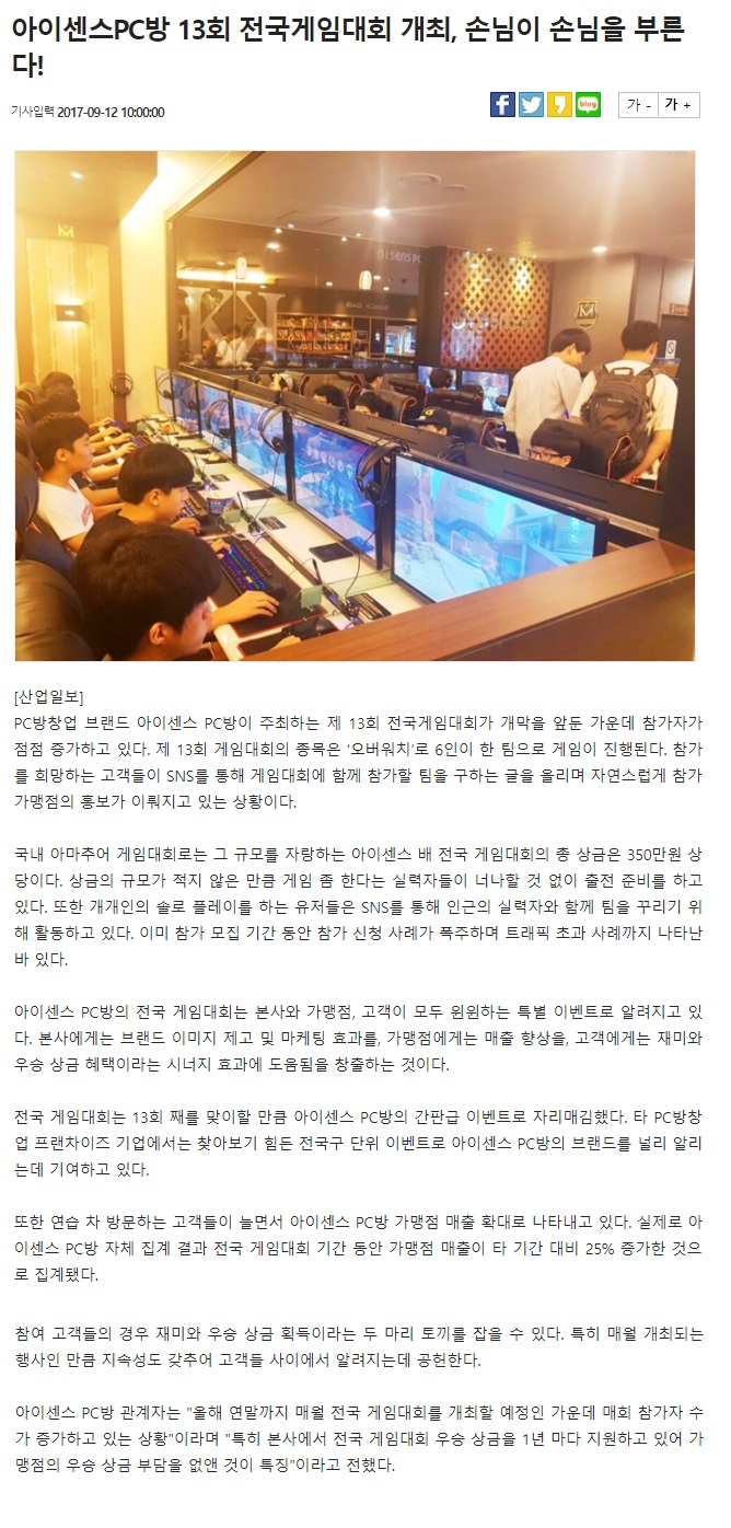 아이센스PC방 13회 전국게임대회 개최, 손님이 손님을 부른다!