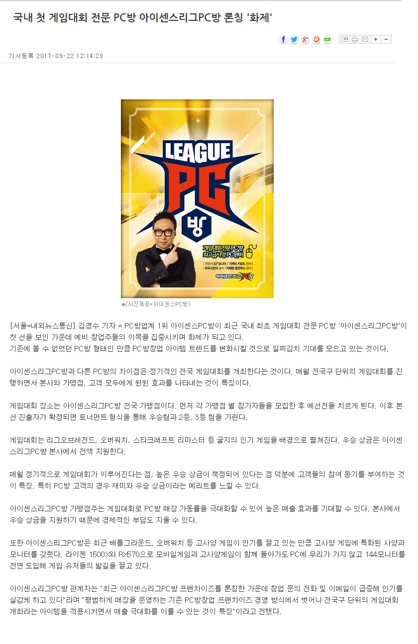국내 첫 게임대회 전문 PC방 아이센스리그PC방 론칭 '화제'