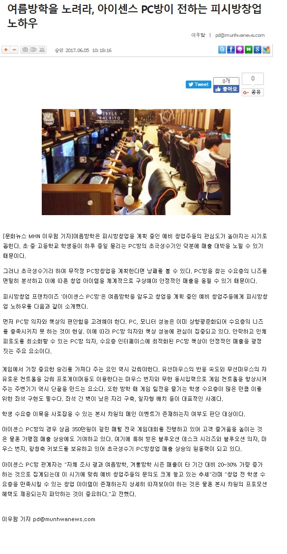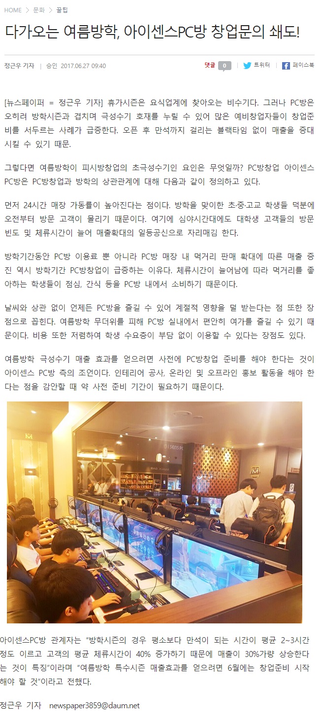 여름방학을 노려라, 아이센스 PC방이 전하는 피시방창업 노하우