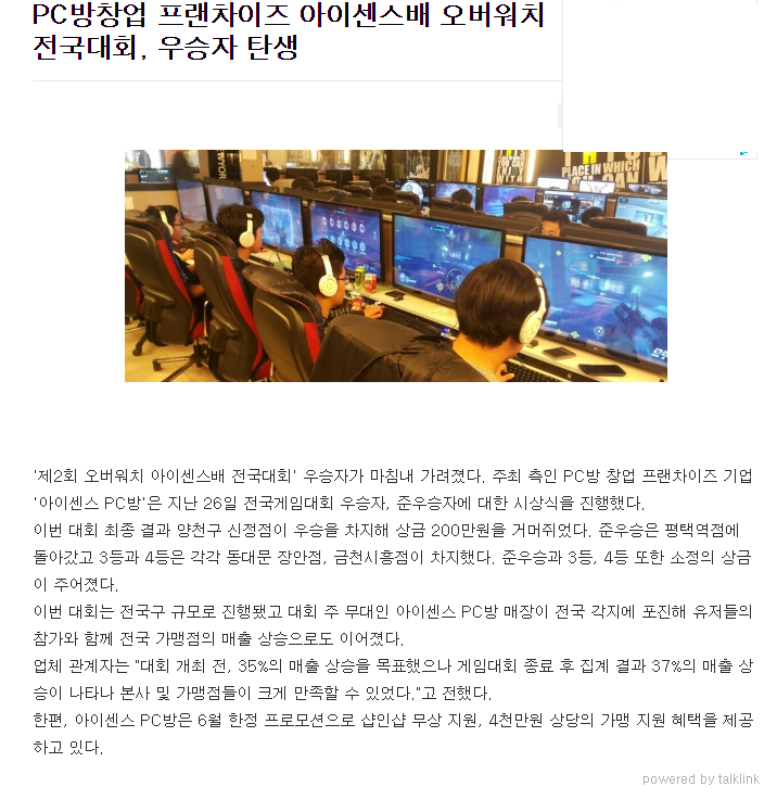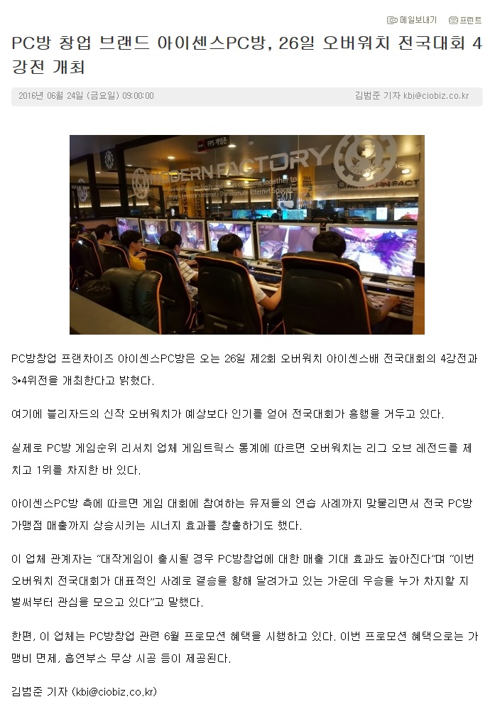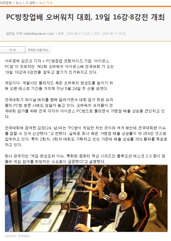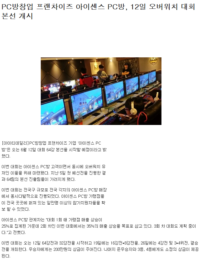 PC방창업 프랜차이즈 아이센스 PC방, 12일 오버워치 대회 본선 개시