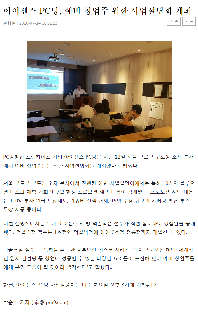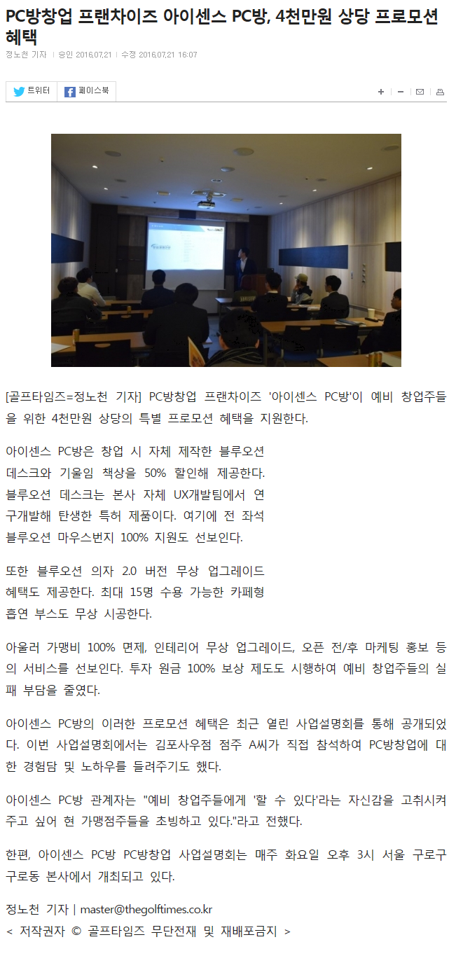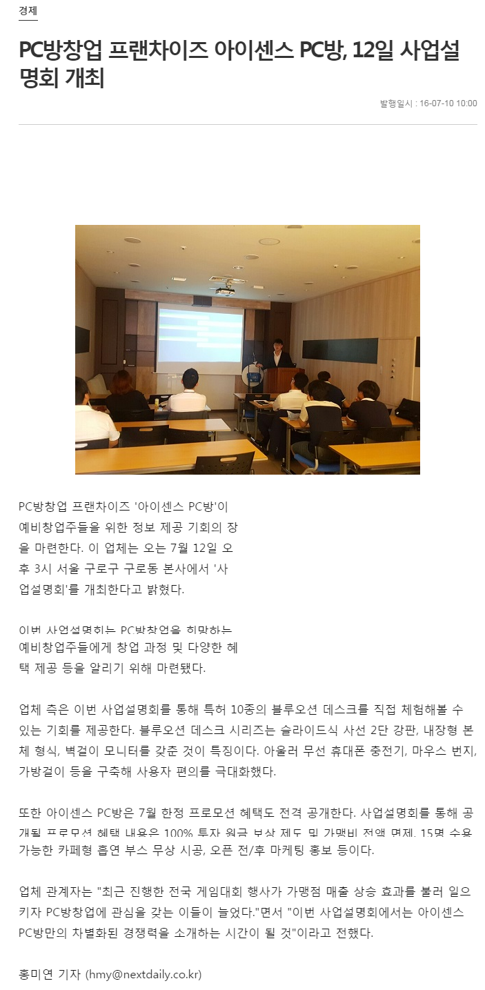 PC방창업 프랜차이즈 아이센스 PC방, 12일 사업설명회 개최