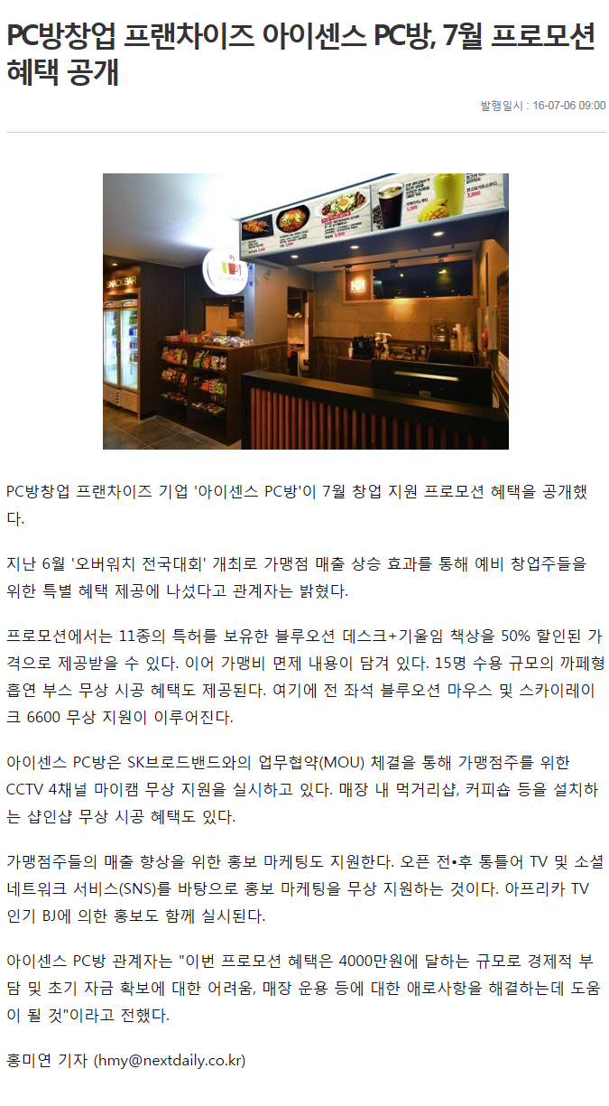 PC방창업 프랜차이즈 아이센스 PC방, 7월 프로모션 혜택 공개