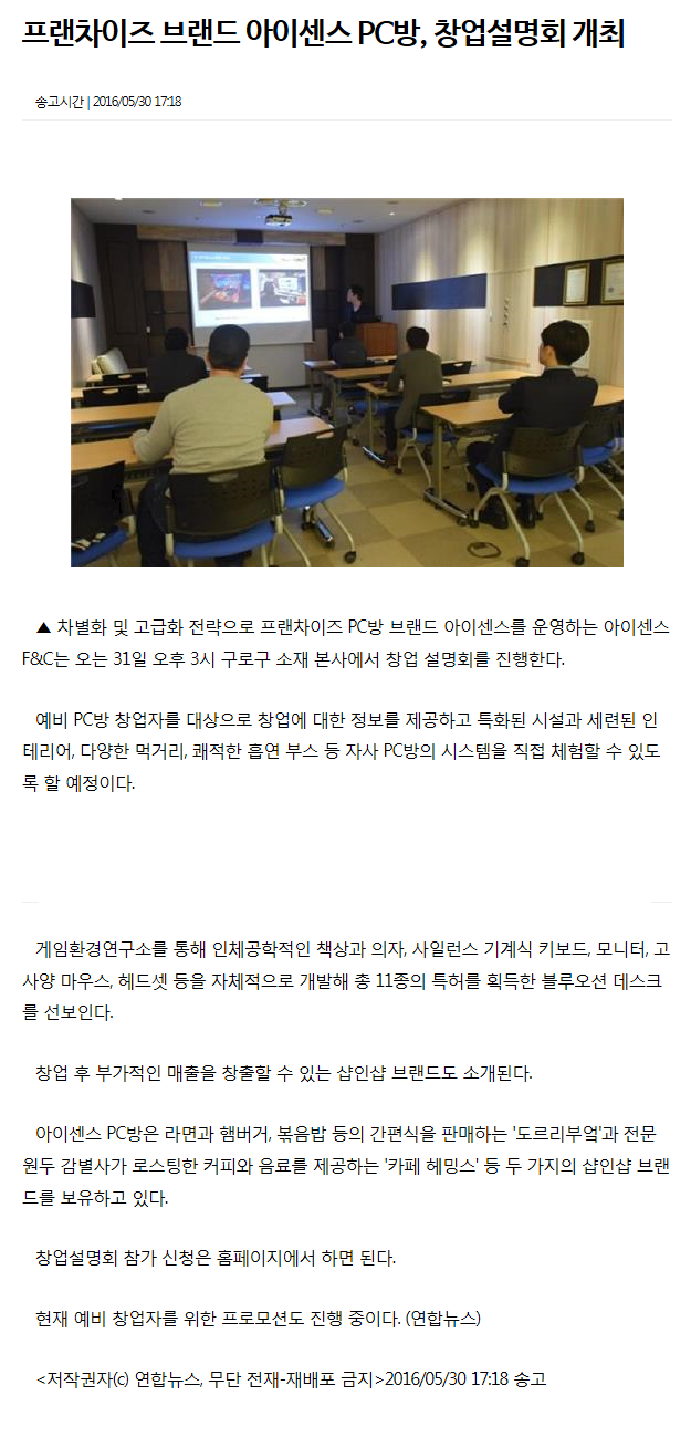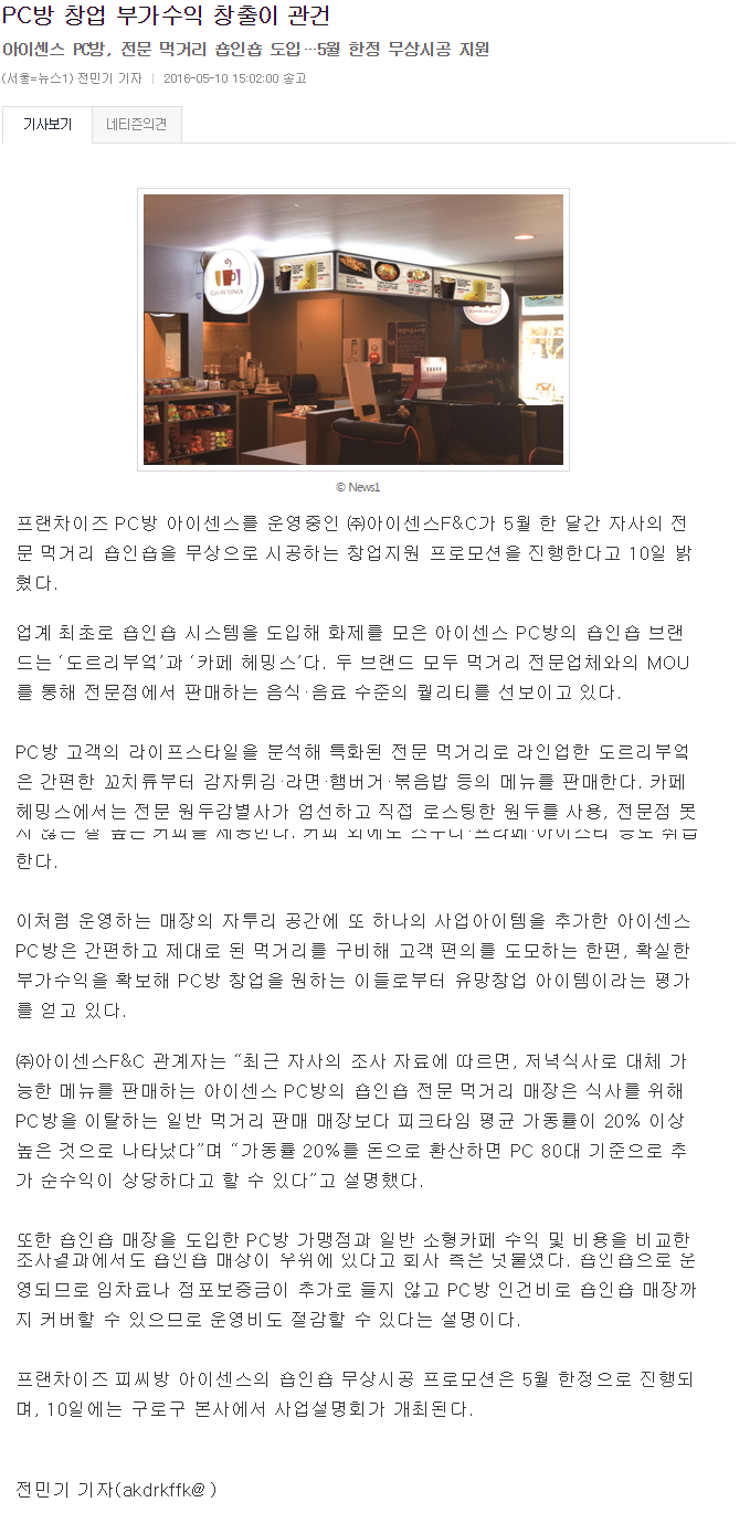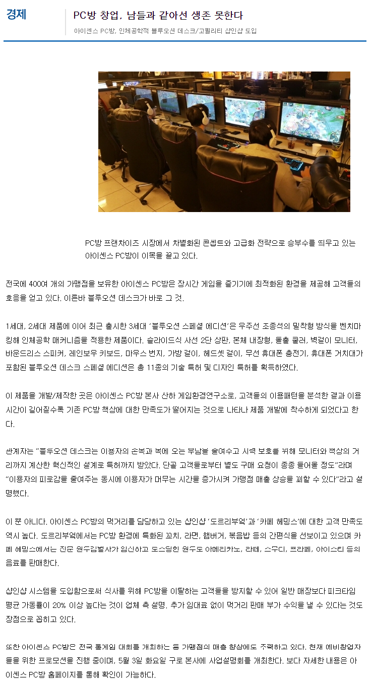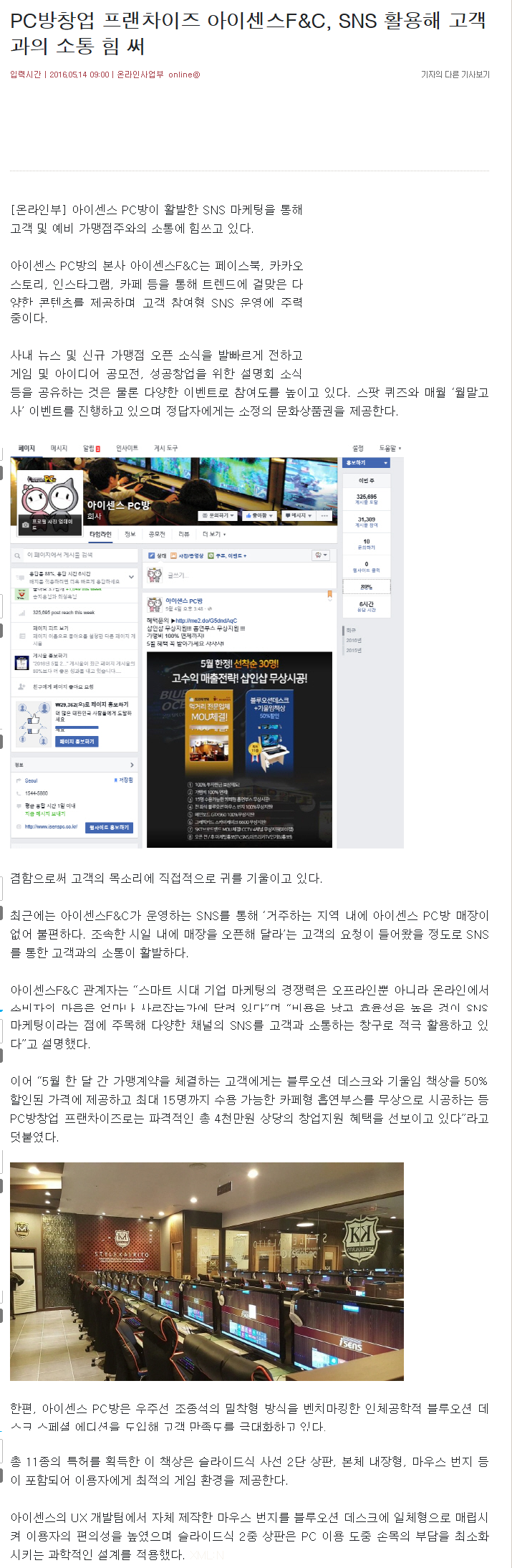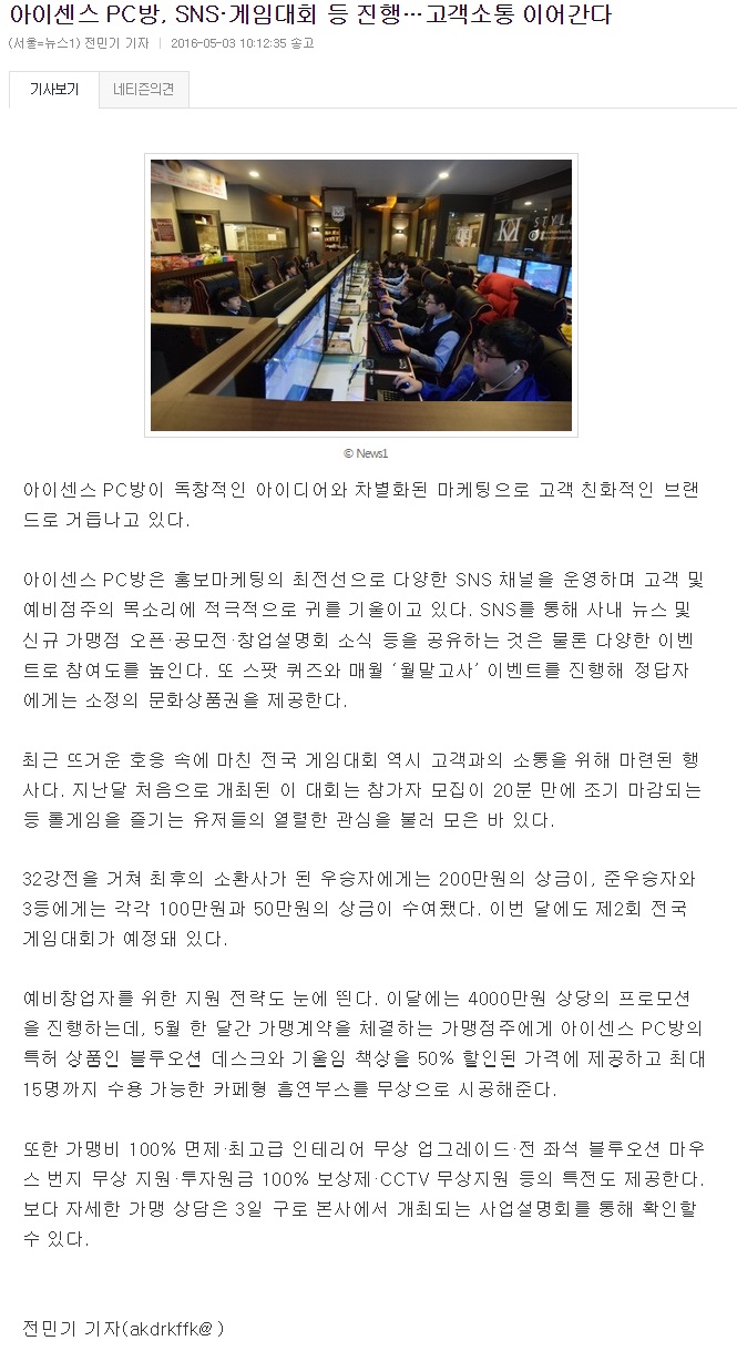PC방창업 프랜차이즈 아이센스F&C, SNS 활용해 고객과의 소통 힘 써