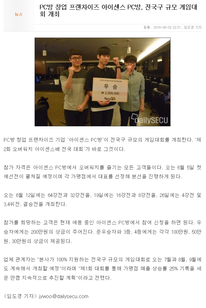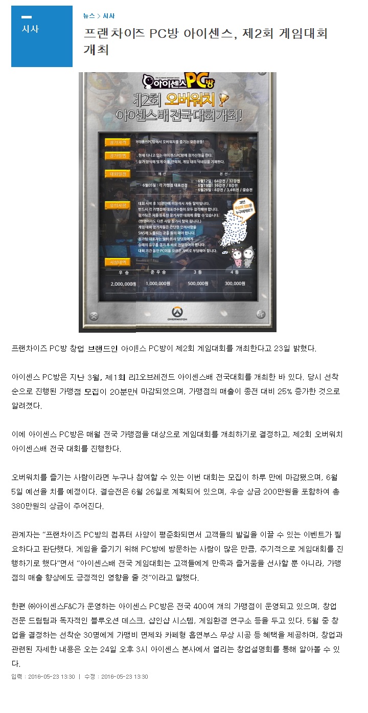 PC방 창업 프랜차이즈 아이센스 PC방, 전국구 규모 게임대회 개최