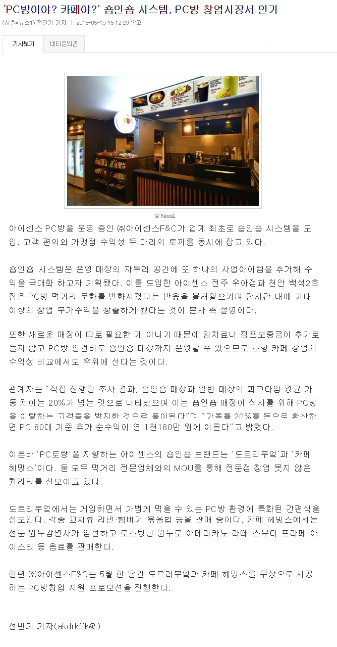 PC방 변신 또 변신.. 도르리부엌, 카페 헤밍스 등 샵인샵 서비스