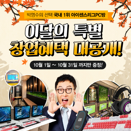 PC방창업브랜드 '아이센스리그PC방', 총 29가지 10월 창업해택 대공개!